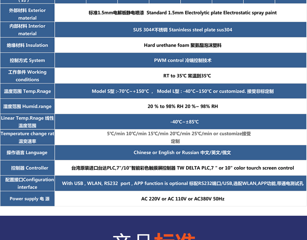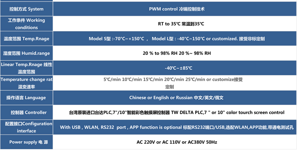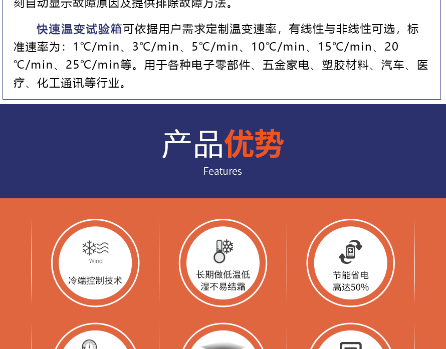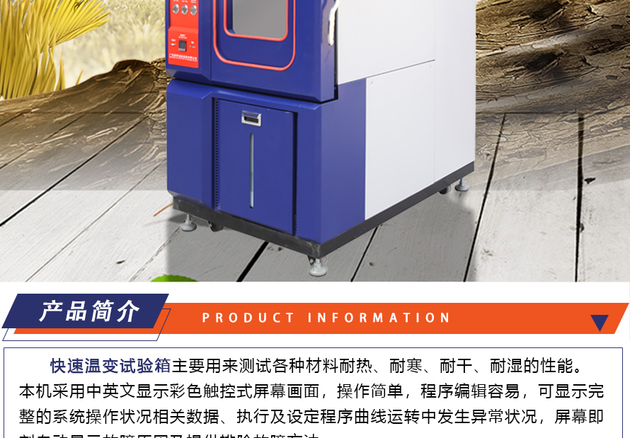 用途:快速溫變?cè)囼?yàn)箱主要用來(lái)測(cè)試各種材料耐熱、耐寒、耐干、耐濕的性能。本機(jī)采用中英文顯示彩色觸控式屏幕畫(huà)面,操作簡(jiǎn)單,程序編輯容易,可顯示完整的系統(tǒng)操作狀況相關(guān)數(shù)據(jù)、執(zhí)