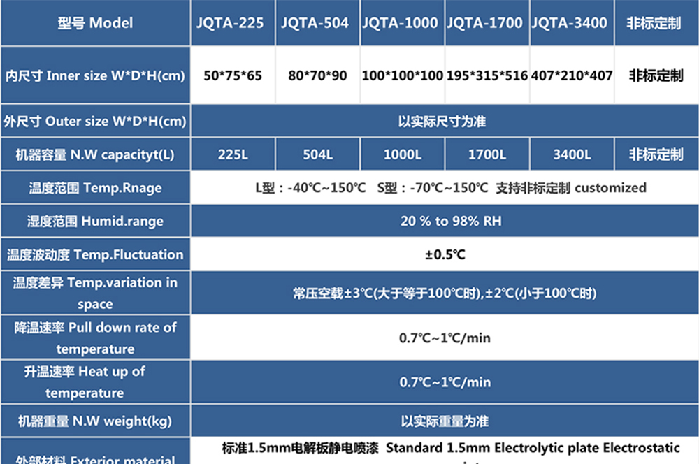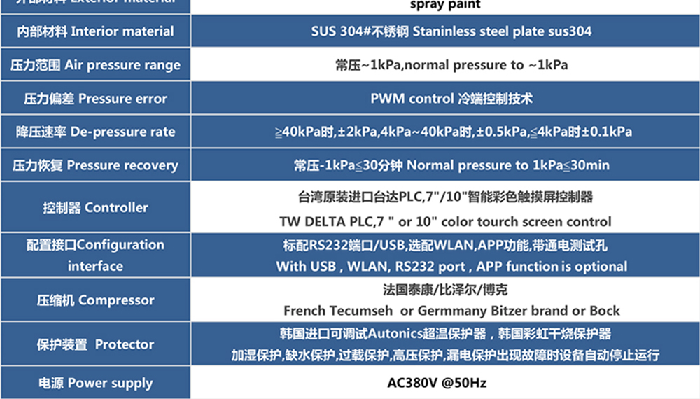 新款高低溫低氣壓試驗(yàn)箱參數(shù)表