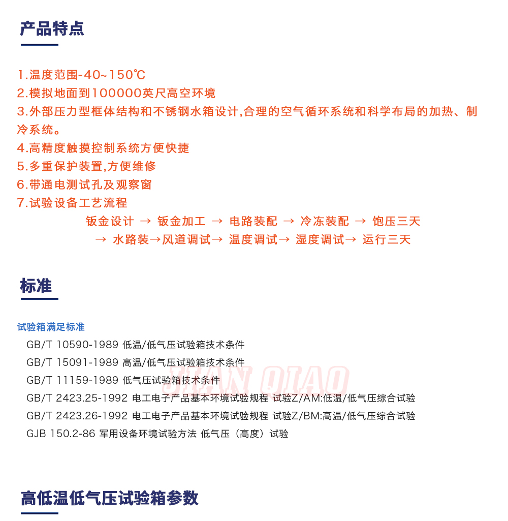 產(chǎn)品型號:JQTA-225 品牌:劍 喬 用途:高低溫低氣壓試驗(yàn)箱:主要用于試驗(yàn)工件在低氣壓、高溫低溫、凝露、結(jié)霜單項(xiàng)或同時(shí)作用下的環(huán)境適應(yīng)性與可靠性試驗(yàn),并或同時(shí)對試件通電進(jìn)行電氣性能參數(shù)的測量。咨詢熱線:13829135130